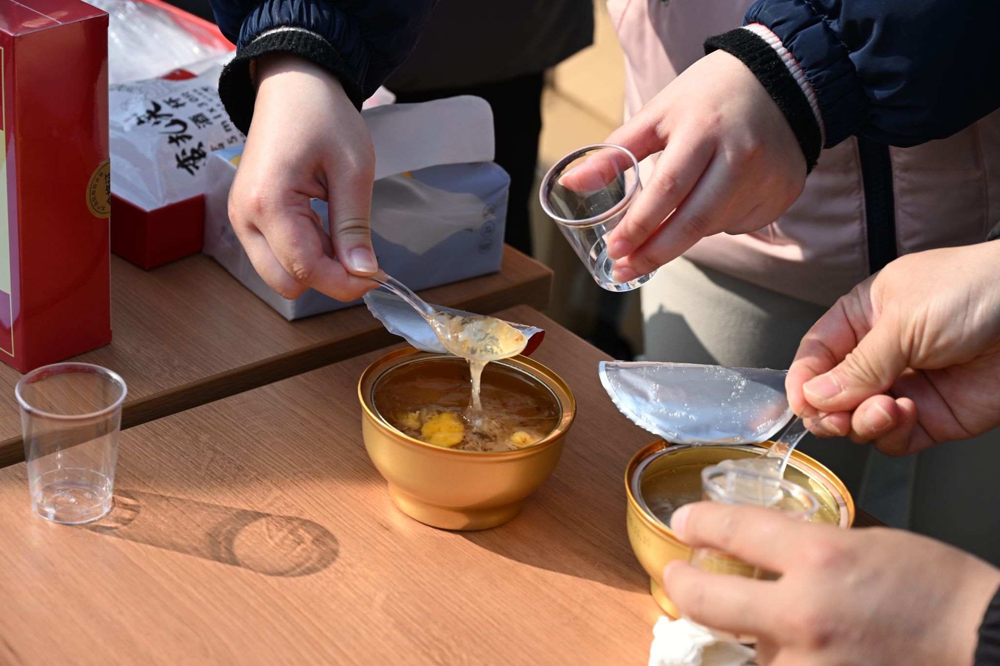 同学们品鉴清甜顺滑的桃胶羹(吴承春 供图)